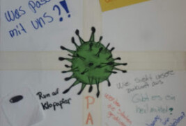 Wie seht ihr die Welt vor und nach Corona? Was ist Corona für euch persönlich? Wie seht ihr euch vor und nach Corona? Fragen wie diese waren der Ausgangpunkt einer aktuellen Themenreihe. Schülerinnen und Schüler einer 10. Klasse der GHS Tiefentalstraße in Köln Mülheim haben das Thema Corona im Kunstunterricht wieder aufgegriffen.